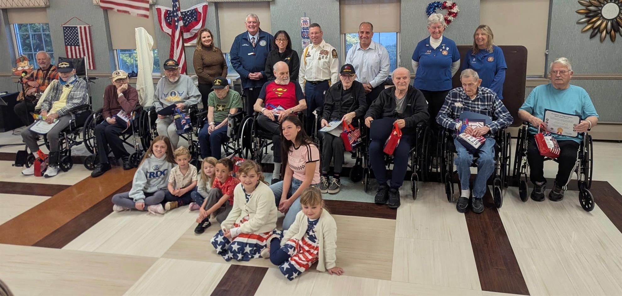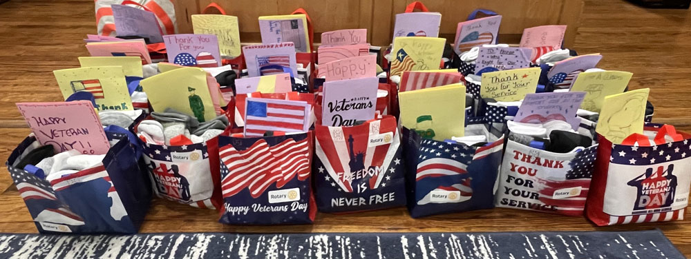 At a special Veterans Day celebration Nov. 11, the vets at Acadia Center of Nursing and Rehabilitation were presented gift bags of new socks, donated and collected by Riverhead Rotarians.