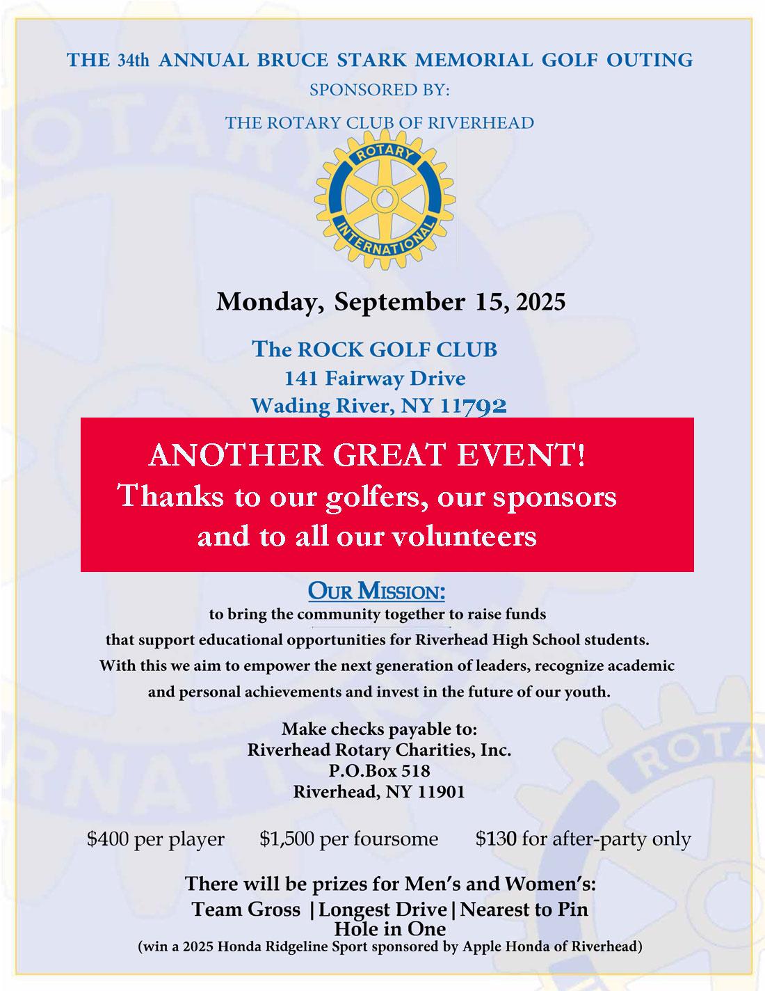 Riverhead Rotary is pleased to offer scholarships for high school students heading to college. The due date for HS Seniors who live within the Riverhead Central School District is March 21, 2025. We are offering 11 scholarships this year via this application process.