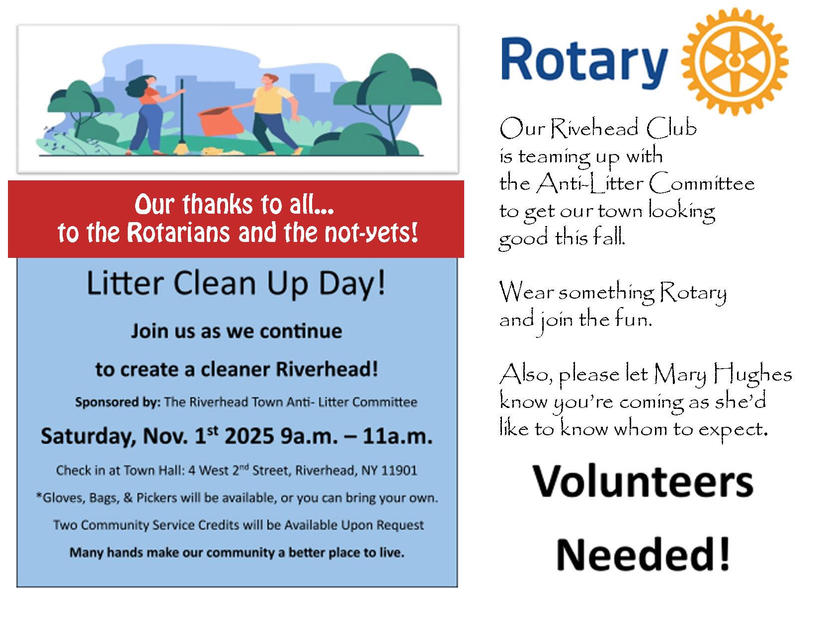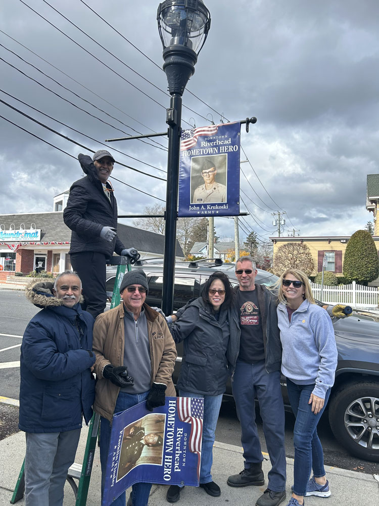 This year, Riverhead Rotarians assisted the Town of Riverhead Veterans Advisory Committee with the annual removal and storage of the veteran banners. From Memorial Day through Veterans Day, the banners are on display on Main Street, Peconic Ave., Roanoke Ave., McDermott Ave. and Town Square.