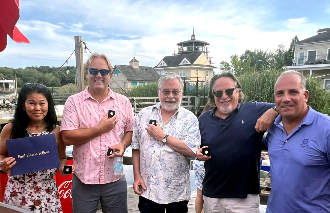 Our Scholarship Committee, headed by the exceptionally capable and dedicated Annmarie Zilnicki, presented life-changing gifts to Riverhead students this year. Flanked by Riverhead Rotary President Randy Morreale on the left and Immediate Past President George Dupree on the right, with AnnMarie in the middle, eight of the bright and talented recipients are shown here along with Brian Stark whose generous donations did much to augment the blessings.